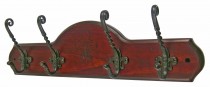 HEADBOURNE HR8101H 4 DECROTIVE IRON HOOKS ON ANTIQUE WOODEN COAT RACK